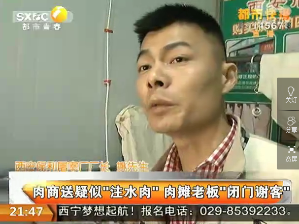 肉商送疑似“注水肉” 肉攤老板“閉門謝客”陜西都市青春頻道報道,轄區內肉商肉商送疑似“注水肉” 肉攤老板“閉門謝客”