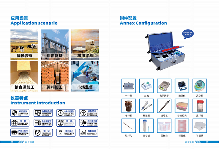深圳市芬析儀器制造有限公司(深芬儀器)研發(fā)生產(chǎn)的CSY-YG701嘔吐毒素快速測定儀應(yīng)用競爭抑制免疫層析的原理,通過檢測線熒光定量卡中的熒光強(qiáng)弱程度,定量分析待檢樣品中嘔吐毒素殘留含量,能夠快速檢測玉米、小麥、大米、大麥、小米和燕麥等谷物、飼料、面粉、食用油、調(diào)味品等食品中嘔吐毒素含量,適用于糧油監(jiān)測中心、糧油飼料生產(chǎn)加工、食品加工貿(mào)易、畜禽養(yǎng)殖戶自查、質(zhì)監(jiān)部門用于市場快速篩查等。