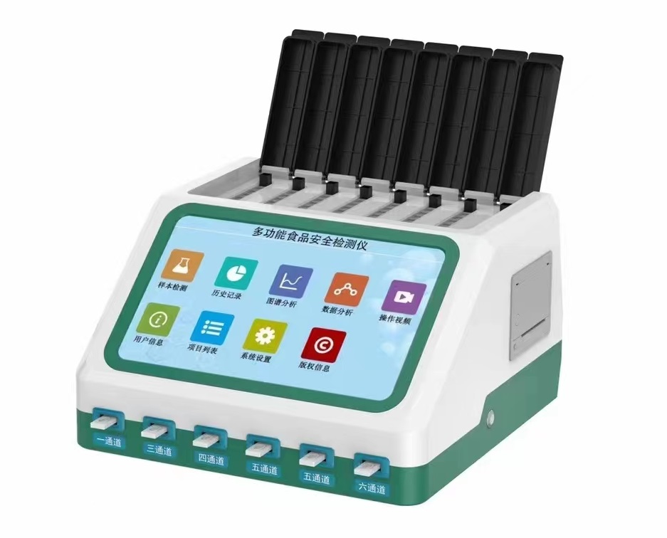 食品安全檢測儀深芬儀器研發生產的CSY系列食品安全測定儀能夠快速檢測食品色素(檸檬黃、日落黃、胭脂紅、莧菜紅、誘惑紅、亮藍、赤蘚紅)、病害肉(組胺檢測、揮發性鹽基氮含量、肉類細菌毒素)、重金屬(鉛、汞、鉻、 砷、鎘)、蛋白質、粗蛋白、茶多酚、甜蜜素、安賽蜜、吊白塊、淀粉含量、二氧化硫、二氧化氯、過氧化氫(雙氧水)、過氧化值、食用油酸價、食品甲醛、醬油氨基酸態氮、醬油中食鹽、醬油中鐵強化劑、醬油總酸、食醋總酸、食鹽碘、蜂蜜水分、蜂蜜酸度、蜂蜜中果糖葡萄糖、羥甲基糠醛、飴糖、蔗糖、硼砂、亞硝酸鹽、亞硫酸鹽、亞鐵氰化鉀、硝酸鹽、工業火堿(氫氧化鈉)、過氧化苯甲酰、面粉中溴酸鉀、面中鋁、明礬、苯甲酸鈉、焦磷酸二氫鈉、硫氰酸鈉、山梨酸含量、山梨酸鉀、苯甲酸鈉、糧食新鮮度、味精谷氨酸鈉含量、味精硫化鈉、葡萄酒中鐵含量、真假葡萄酒、糖精鈉、芝麻油純度、甲醇含量、乙醇、堿性橙II、脂肪含量、豬油中丙二醛含量、三甲胺、蘇丹紅、羅丹明B、食品中孔雀石綠中的含量;以及其他食品安全有毒有害物質項目進行快速檢測,并且可以和多功能食品安全監控系統。用戶可根據自己的實際需求,從中任意選擇單一項目或者多種項目組成食品安全檢測儀。